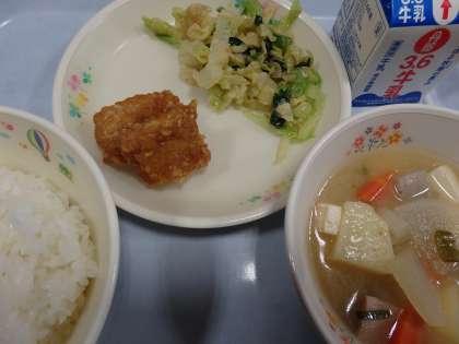 今日の給食 【12/14】 公開日 2020/12/14 更新日 2020/12/14 学校生活 本日のメニュー ○ ごはん ○ 牛乳 ○ いかのさらさ揚げ ○ ごま和え ○ 豚汁 寒いときの豚汁は、体が温まります。いかのさらさ揚げは、いかの歯ごたえを楽しめます。 いいね(0)