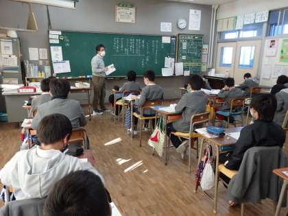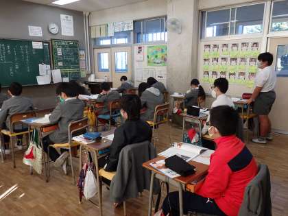 道徳の授業です。賛成と思うか、反対と思うか発表していますが、反対の子はあまりいないようです。
