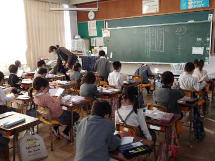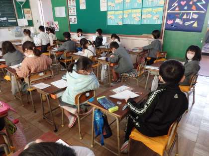 国語の授業です。説明文の内容が理解できるように、ミニ紙芝居を作っています。