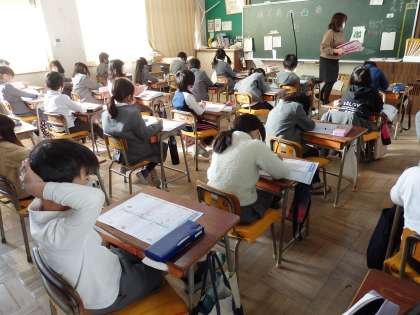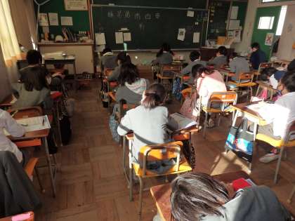 国語のテストです。真剣に取り組んでいます。