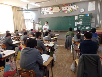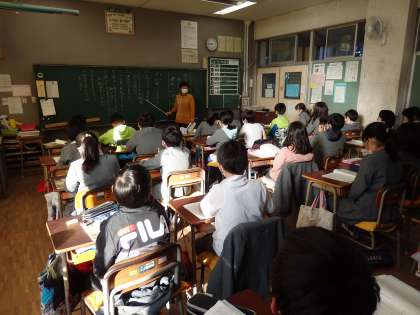 国語の授業です。教科書を読みながら、単元の学習課題を確認しています。
