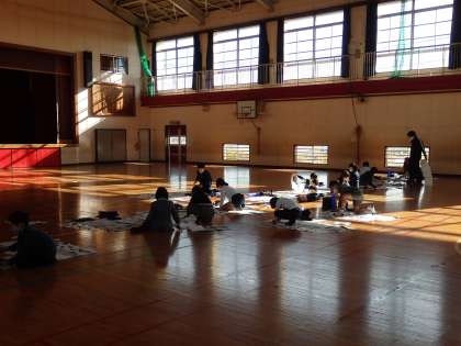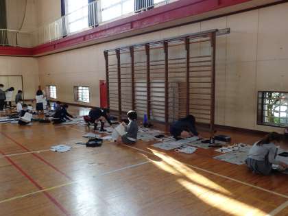 今日は、広い場所で練習できるように、体育館で練習しています。