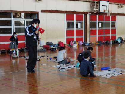 先生も指示が徹底するように、ハンドマイクを使って指導しています。