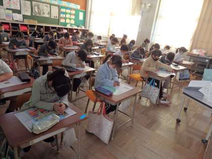 国語のテスト中です。黙々と取り組んでいて、立派です。