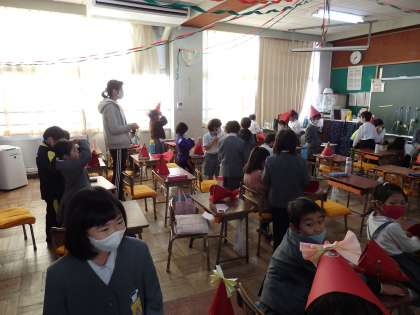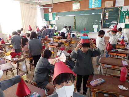 12月24日 1年生 授業風景 公開日 2020/12/24 更新日 2020/12/24 学校生活 4時間目にやるお楽しみ会に向けて、準備中です。全員、サンタクロースの帽子をかぶる予定のようです。 いいね(0) 1年生