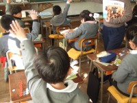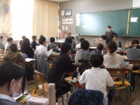 3年生の廊下に、クリスマスの靴下の絵を色塗りした絵が展示されてありました。