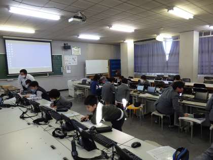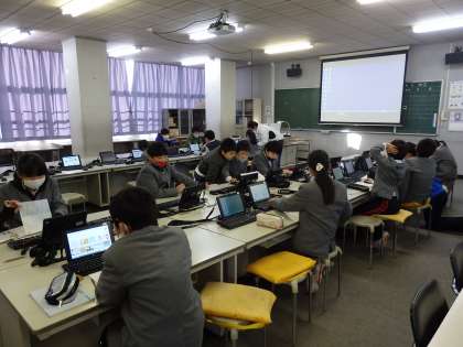 国語の授業です。「ことばについて調べよう」の単元で、インターネットを使って調べています。