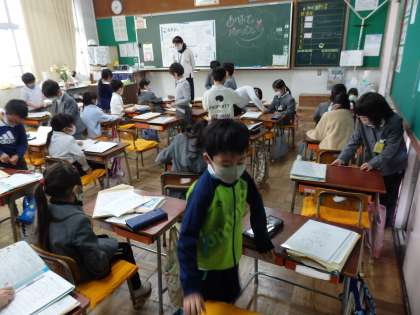 1月5日 1年生 授業風景 公開日 2021/01/05 更新日 2021/01/05 学校生活 3学期から新しく音楽の先生をお招きするので、すぐに名前を覚えてもらえるように、名札を見やすい位置に貼り替えています。 いいね(0) 1年生