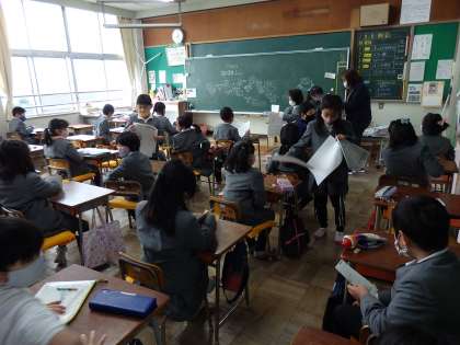 1月5日 授業風景 公開日 2021/01/05 更新日 2021/01/05 学校生活 新学期初日は配布するプリントが多いので、係の子供たちに、たくさんのプリントを渡して、一人一人に配ってもらっています。 いいね(0) 2年生