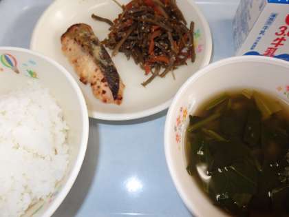 今日の給食 【1/7】 公開日 2021/01/07 更新日 2021/01/07 今日の給食 本日のメニュー ○ ごはん ○ 牛乳 ○ 鮭のみそ焼き ○ きんびらごぼう ○ お雑煮 体に優しい感じのするメニューです。お雑煮は、しっかりだしも取れ、味わいのある一品でした。 いいね(0)
