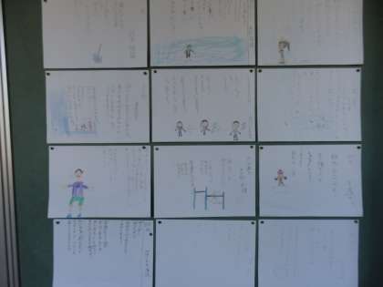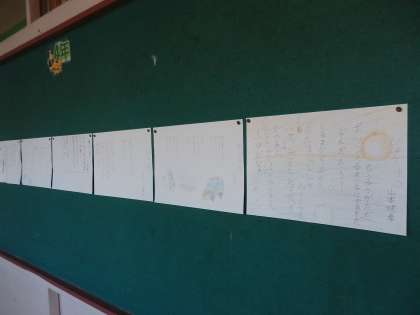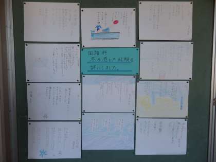4年生が、昨日取り組んだ「冬」をテーマにした詩が、4年生の廊下に展示されていました。