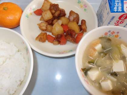 今日の給食 【1/8】 公開日 2021/01/08 更新日 2021/01/08 今日の給食 本日のメニュー ○ ごはん ○ 牛乳 ○ 鶏肉とじゃがいもの揚げ煮 ○ 豆腐と油揚げのみそ汁 ○ みかん 鶏肉とじゃがいもの揚げ煮は、こってりしているので、ごはんとよく合います。 いいね(0)