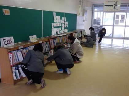 2枚目は、本の整理をする図書委員の子供たちの様子です。
