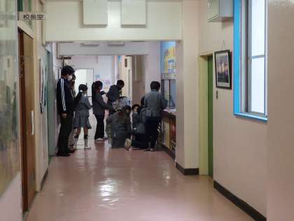 3枚目は、掲示の貼りかえをしている広報放送委員の子供たちの様子です。