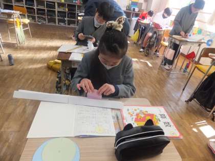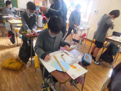 いろいろな大きさの円の円周を調べ、円の直径と円周の長さには、関係があるのかを考えていました。