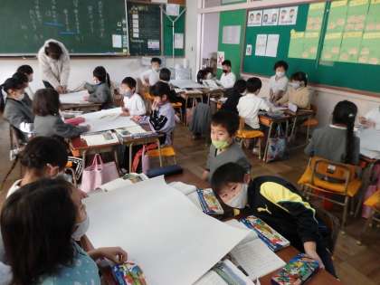 1月18日 1年生 授業風景 公開日 2021/01/18 更新日 2021/01/18 学校生活 国語の授業です。説明文の学習で理解したことを、グループでイラストにまとめる作業を始めました。 いいね(0) 1年生