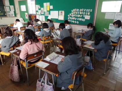 算数のテストです。テストが終わった子は、静かに読書をしています。