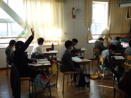 道徳の授業です。相互指名しながら、自分の考えを発表しています。
