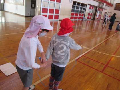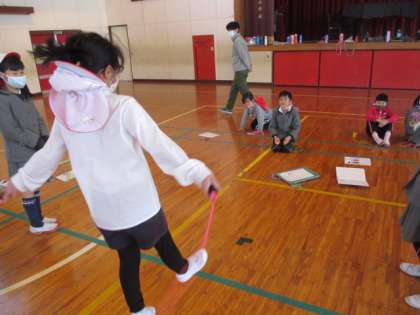 2年生になわとびも教わりました。跳び方、数え方、腕の動かし方・・・優しく丁寧に教えてくれました。