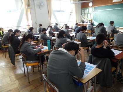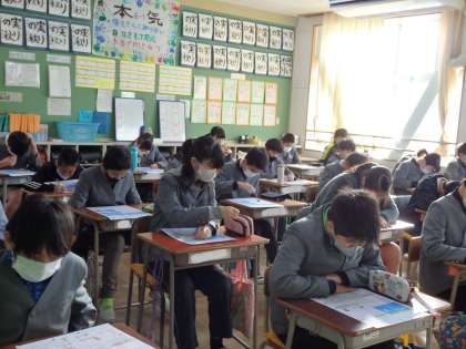 理科のテスト中です。真剣な眼差しで、黙々と取り組んでいます。