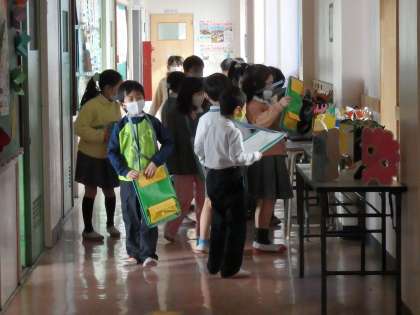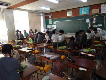 国語の授業です。支度をして校内美術展巡りに出発します。