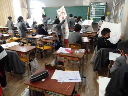 2時間目の、授業参観での「ドリームツリー」の発表に向けて準備をしています。