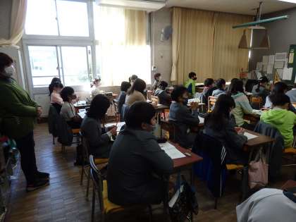 算数の授業です。計算の仕方を工夫して、簡単にする方法を考えています。