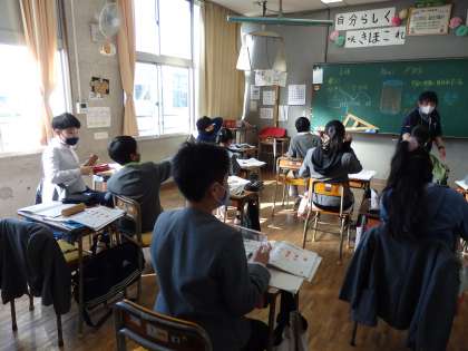 3月3日 5年2組 授業風景 公開日 2021/03/03 更新日 2021/03/03 学校生活 算数の授業です。円柱の模型を使って、それぞれのの呼び名を友だちと確認しています。 いいね(0) 5年生