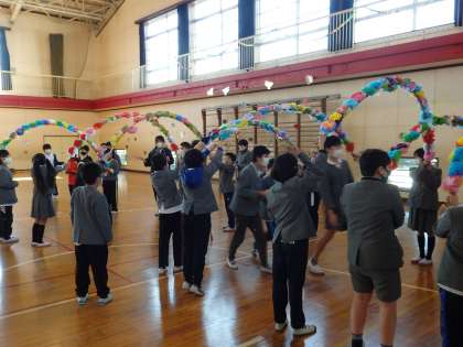 2枚目、3枚目の画像は、6年生の退場を見送っている様子です。