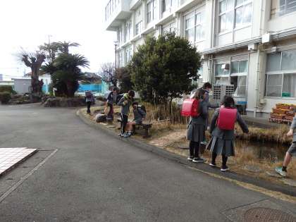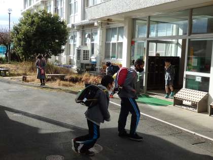 6時間目が終わって、4年生以上の子供たちも下校です。