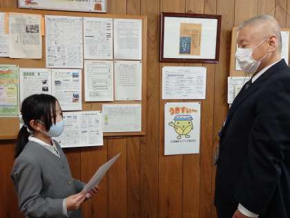 「明るい選挙啓発習字作品」銀賞 表彰 【3/4】 公開日 2021/03/04 更新日 2021/03/04 学校生活 沼津市選挙管理委員会が実施する「明るい選挙啓発習字作品」で、銀賞を受賞した児童2名に校長室で賞状を渡しました。 いいね(0)