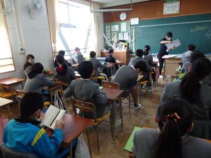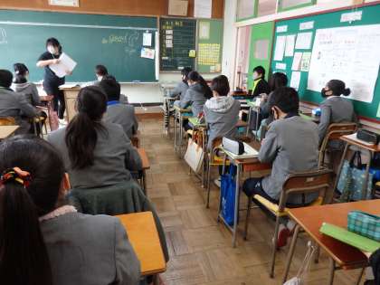 英語の授業です。これから、今年度最後の英語のテストに取り組みます。
