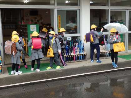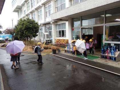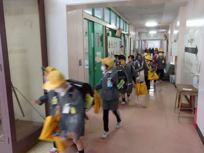 給食を食べて、1,2年生の子供たちは下校です。