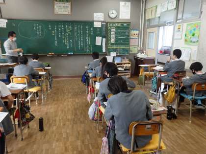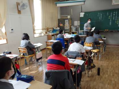 道徳の授業です。先生の問いに、自分の考えを話しています。
