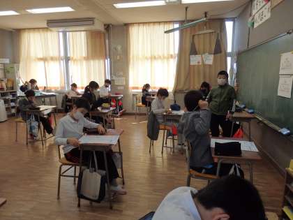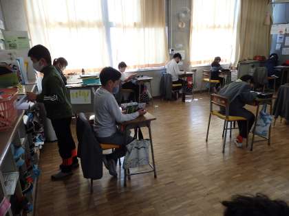 算数のテストです。テストを提出した子は、読書をしています。