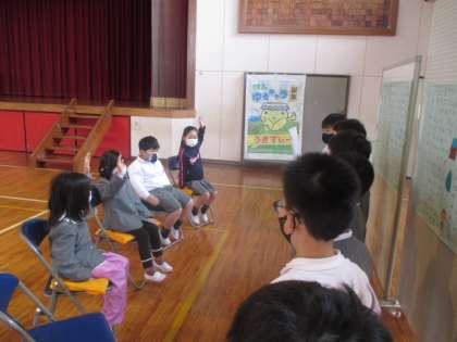 3年生に招待されて、総合で調べてまとめた「お茶」についての発表を聞きました。