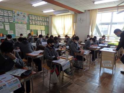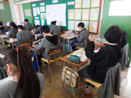 社会科の授業です。黙々とテストの振り返りに取り組んでいます。