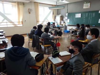 国語の授業です。模擬討論会をやっています。