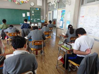 算数の授業です。教科書の問題に各自取り組んでいます。