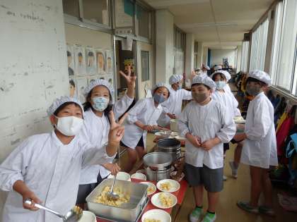 2枚目の画像は4年生、3枚目の画像は5年生の配膳風景です。