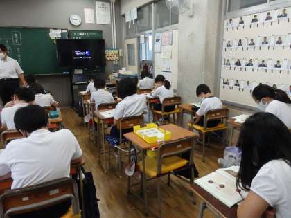 国語の授業です。分担を決めて、教科書の本文の音読をしています。