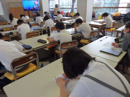 算数の授業です。黙々とテストに取り組んでいます。