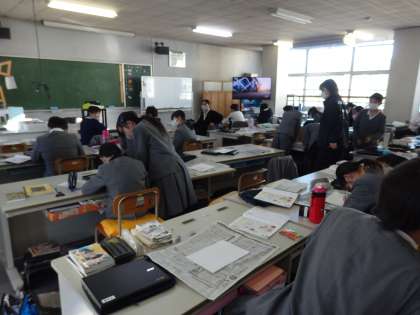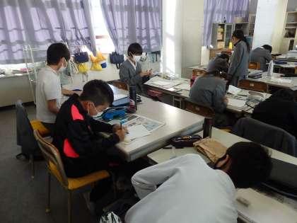 書写の授業です。ハンコ消しゴム作りをしています。
