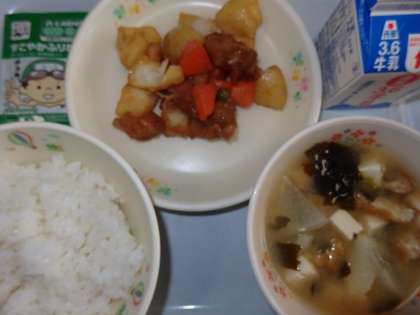 鶏肉とじゃがいもの揚げ煮は、こってりしているので、ごはんとよく合います。