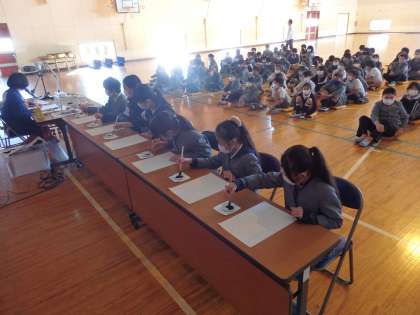 ワークショップでは、実際に、落語を聞いたり、落語の出囃子などについて教えていただいたり、落語の文字について教えていただき実際に書いてみたりして、1月の公演に備えました。