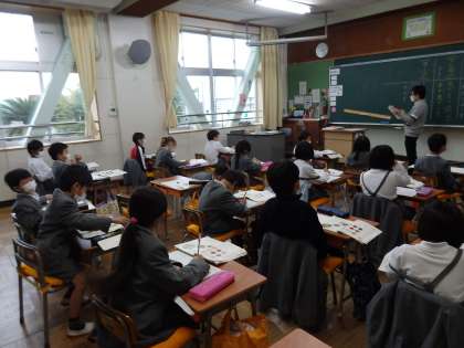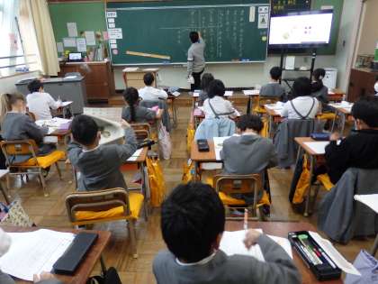 順番を示す言葉のとらえがたいせつなので、先生が、丁寧に板書しながら確認しています。