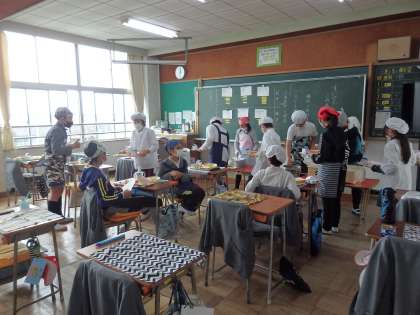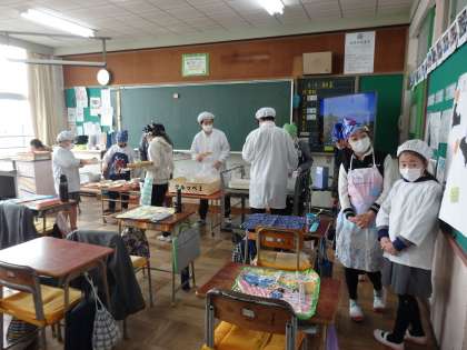 2枚目の画像は6年1組、3枚目の画像は6年2組の配膳風景です。