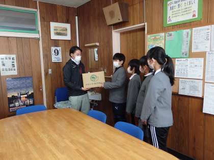 児童を代表して、6年生の子供たち4名がJAなんすんの方よりお茶を受け取りました。