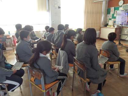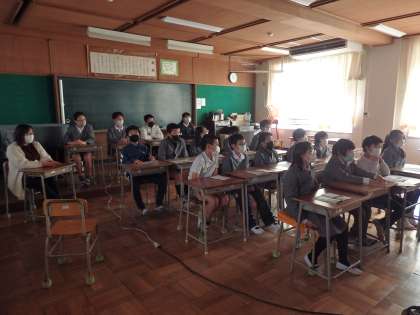 6年生は、3、4時間目に、劇団四季のミュージカル『はじまりの樹の神話〜こそあどの森の物語〜』のオンデマンド配信による公演を、2つの教室に分かれて視聴しました。子供たちは、物語の世界に引き込まれていました。