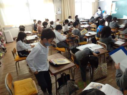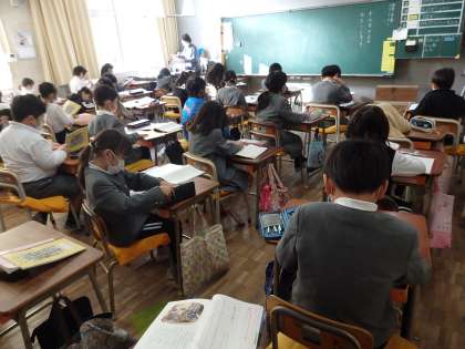 国語の授業です。「かさこじぞう」の新しい場面の学習をしていきます。